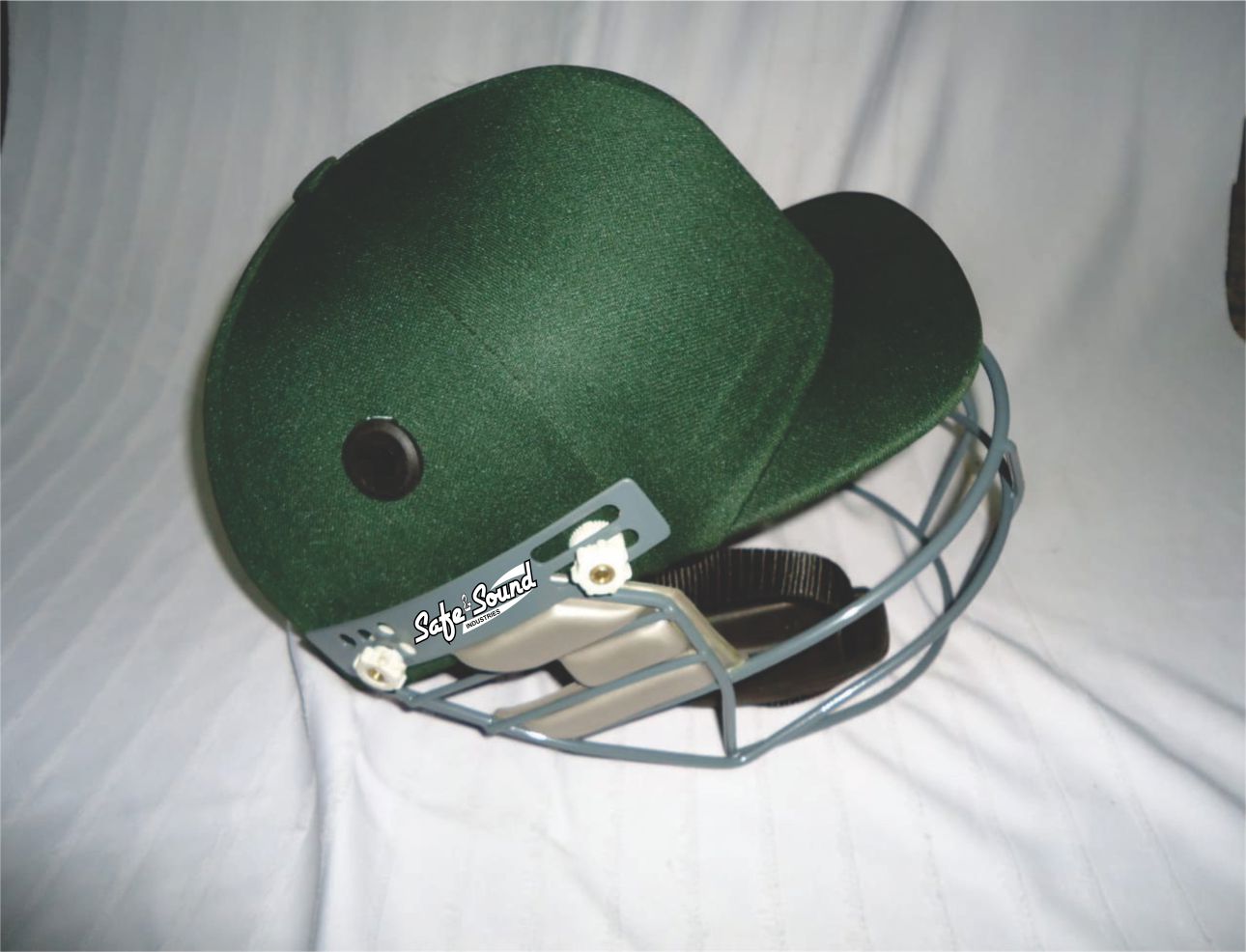 Safe And Sound Plus Titter Cricket Helmet Fixed cricket helmets information Fix cricket helmet is made by Fiberglass And covered with the soft eva padding , Clothing material is speedo 320 GSM Fixing vaisour is Steel vasiour