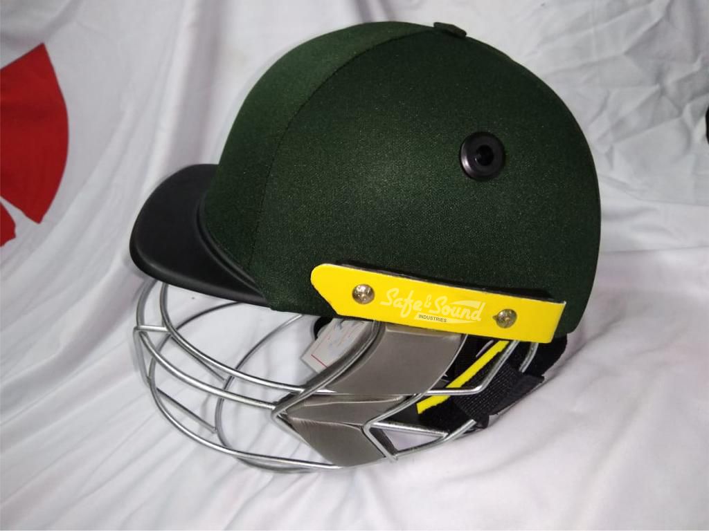 Safe And Sound Simple Titter Cricket Helmet Fixed cricket helmets information Fix cricket helmet is made by Fiberglass And covered with the soft eva padding , Clothing material is speedo 320 GSM Fixing vaisour is Steel vasiour
